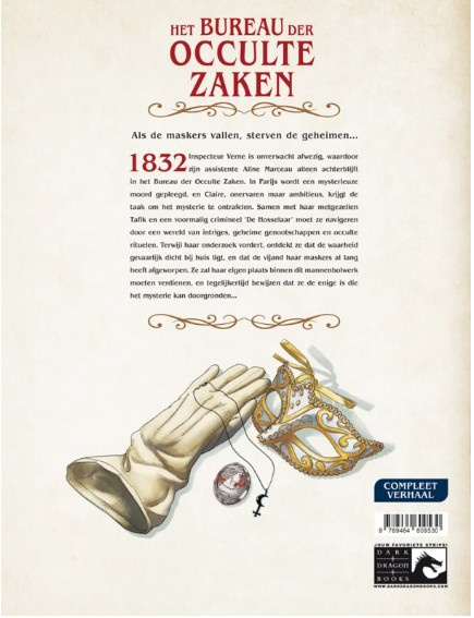 1832 Inspecteur Verne is onverwacht afwezig, waardoor zijn assistente Aline Marceau alleen achterblijft in het Bureau der Occulte Zaken. In Parijs wordt een mysterieuze moord gepleegd, en Claire, onervaren maar ambitieus, krijgt de taak om het mysterie te ontrafelen. Samen met haar metgezellen Tafik en een voormalig crimineel ‘De Hosselaar’ moet ze navigeren door een wereld van intriges, geheime genootschappen en occulte rituelen. Terwijl haar onderzoek vordert, ontdekt ze dat de waarheid gevaarlijk dicht bij huis ligt, en dat de vijand haar maskers al lang heeft afgeworpen. Ze zal haar eigen plaats binnen dit mannenbolwerk moeten verdienen, en tegelijkertijd bewijzen dat ze de enige is die het mysterie kan doorgronden...