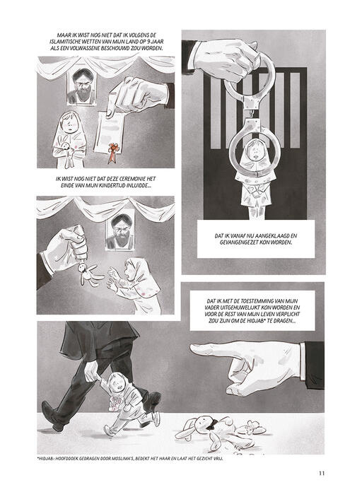 Volgens de islamitische wet is de vader eigenaar van het bloed van zijn kinderen. Dat betekent dat hij zijn kroost nagenoeg ongestraft mag vermoorden. In de Iraanse samenleving heeft de man dus alle macht, ook over vrouwen. In dit album vertelt Mansoureh Kamari het verhaal van haar leven als kind en als tiener onder dat mannelijke juk. Ze beschrijft ontstellende feiten: de vele verboden (om te lachen, te zingen, te dansen), het risico om als negenjarige te worden uitgehuwelijkt en op je vijftiende te worden geëxecuteerd, nadat je eerst nog wordt verkracht. Ze vertelt over aanrandingen, op straat, in de taxi, bij de dokter... en de voortdurende angst, de onmacht, de onmogelijkheid om je leven zelf in handen te nemen. Maar Mansoureh vlucht uit Iran en ontkomt zo aan de voortdurende onderdrukking. Dit album is ook het verhaal van een metamorfose, van een vrouw die haar vrijheid hervindt.