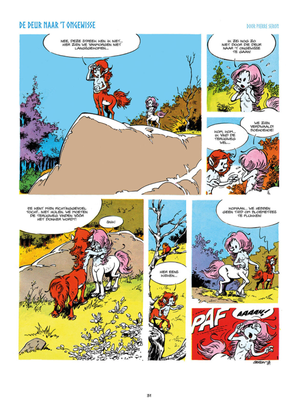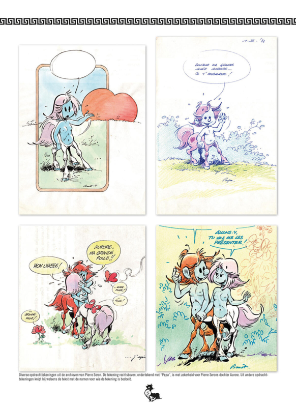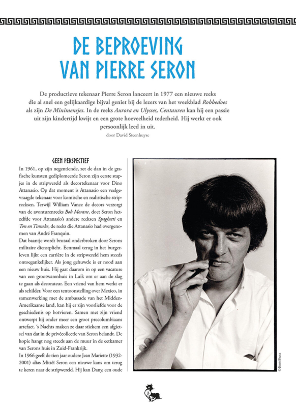 Na De Minimensjes en De Minivrouwtjes geeft Saga Uitgaven een andere reeks van Pierre Seron compleet uit met veel bonuspagina's. De reeks Aurora en Ulysses, Centauren liep tussen 1977 en 1986 in Robbedoes. Bij Dupuis verschenen vier albums en voor een later Frans album tekende Seron nog een nooit vertaald kort verhaal waarin de Minimensjes opduiken. Meer dan tweederde van de stripverhalen is nooit in een Nederlandstalig album verschenen. Daar komt nu verandering in.