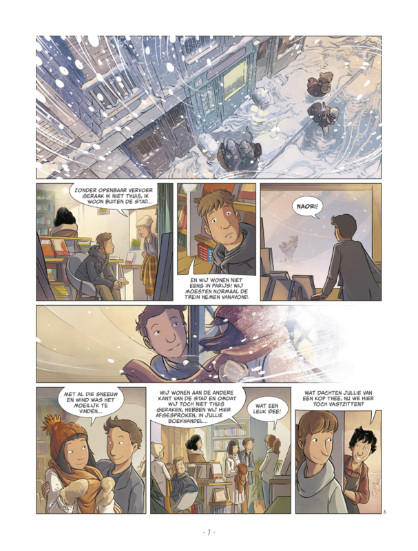 - In dit deel speelt alle activiteit zich af in een boekhandel, tijdens een sneeuwstorm, een soort ‘huis clos’