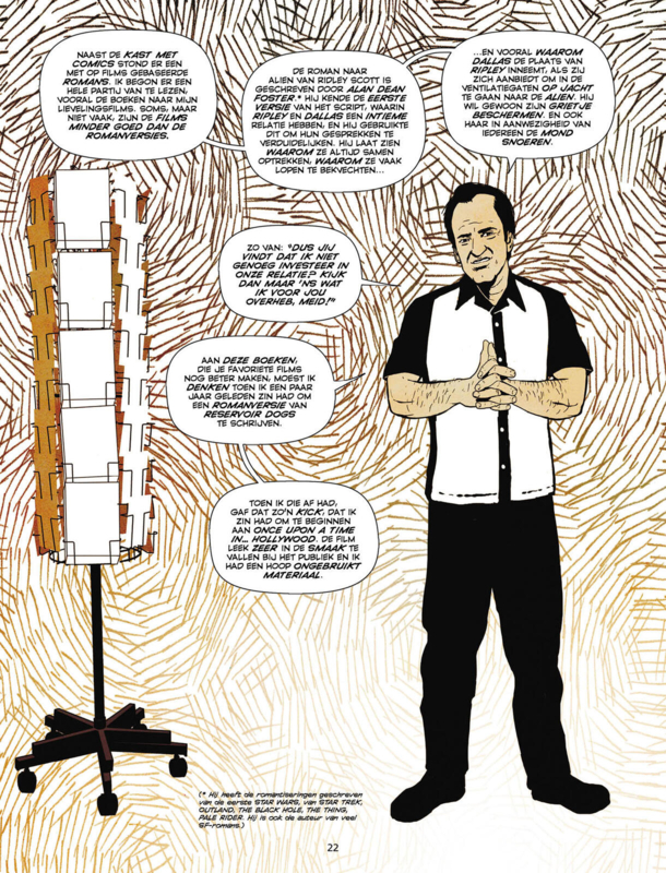 Maar liefst 240 strippagina’s die onthullen hoe een gedreven jonge filmfan en autodidact een van de grootste regisseurs van onze tijd werd. Negen films in een carrière van dertig jaar hebben de filmwereld voorgoed veranderd. Quentin Tarantino’s films zijn een genre op zich en zijn naam wordt gebruikt als bijvoeglijk naamwoord. Vaak geïmiteerd, nooit geëvenaard.