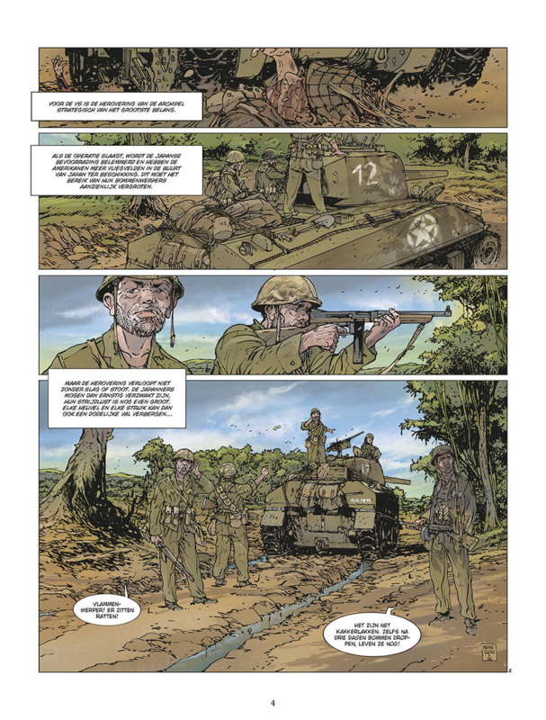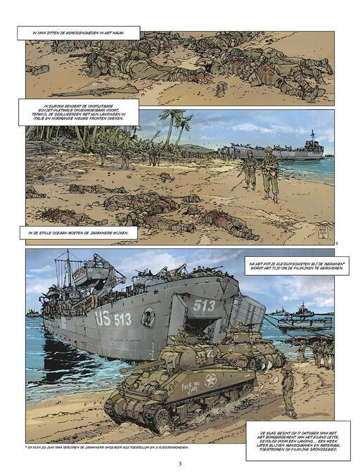 De grootste zeeslag uit de geschiedenis. In 1944 winnen de geallieerden herhaaldelijk van de asmogendheden. In de Stille Oceaan werden de Marianen heroverd door het Amerikaanse leger en werd de weg vrijgemaakt voor een massale aanval op Japan. Om het keizerlijke leger in het nauw te drijven, besloten de Amerikanen de Filipijnen binnen te vallen om de aanvoerroutes af te snijden en de vliegvelden op het land over te nemen. Leyte, gelegen in het centrum van de Filipijnse archipel, was het eerste eiland dat door deze aanval werd getroffen. De Amerikanen willen koste wat het kost winnen. De ingezette armada was de grootste aller tijden. Ze hadden echter geen rekening gehouden met de extreme vastberadenheid van de Japanners, die al hun krachten bundelden in een wanhopig tegenoffensief. Even leek het alsof de geschiedenis het bekende spreekwoord ‘het geluk helpt de dapperen’ nog kracht zou bijzetten, want ondanks het flagrante overwicht van de Amerikanen bleef de uitkomst van de strijd enige tijd onzeker. Gelukkig voor het lot van de wereld keerde de Japanse bravoure en het eerste 'officiële' gebruik van kamikazes het tij niet. De geallieerden zouden weer winnen.