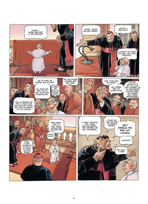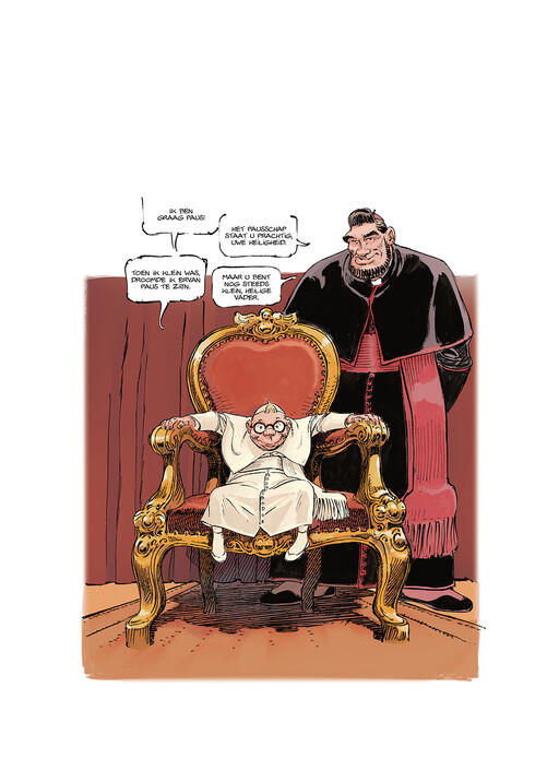 François Boucq, bekend van de western Bouncer, keert terug naar het satirische genre met deze korte verhalen over de kleinste paus in de geschiedenis.