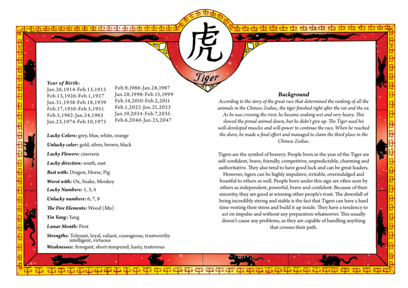 met illiustraties van alle westerse en Chinese zodiacs en bijbehorende informatie over elke zodiac.