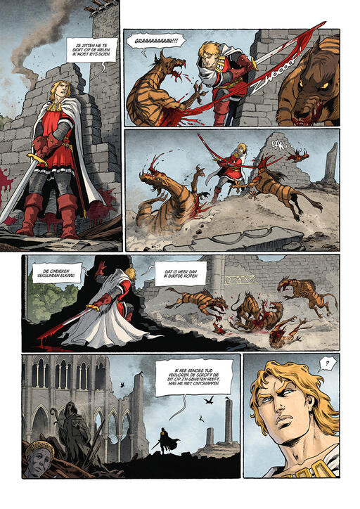 Na de dood van Koning Arthur krijgt de Rode Ridder van Merlijn de opdracht om zich naar de afgelegen zuidelijke eilanden te begeven om zich ter plaatse van de toestand te vergewissen. Bij aankomst wordt Johan geconfronteerd met de gruweldaden van een groep nomaden die moordend en plunderend door het land trekt. Tijdens een zware storm zoekt Johan onderdak in een donjon waar hij gastvrij wordt onthaald door Zigliora (zie deel 24, De Zwarte Banier). Wanneer ze de volgende dag een rit maken en even uitrusten bij een meer, vallen ze beiden in een diepe slaap waaruit Zigliora niet ontwaakt. Johan wil weten wat er aan de hand is, maar botst tijdens z'n zoektocht op levende doden, monsterlijke aaseters en uiteindelijk, Tuan de Barbaar...