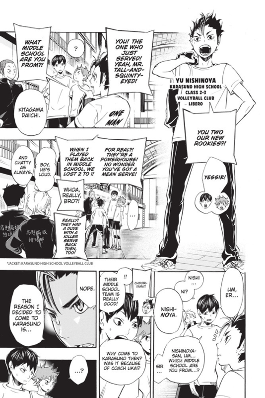 Karasuno has successfully defeated Tohru Oikawa and Aoba Johsai in their practice match, but the team's future doesn’t look so bright. The match uncovered serious holes in Karasuno’s defense, which would be fatal in a real game! What they need is a defense expert, a libero, to cover their holes for them. It turns out Karasuno does have a libero named Yu Nishinoya, but he was suspended for one week for violent behavior! And he's even shorter than Hinata!
