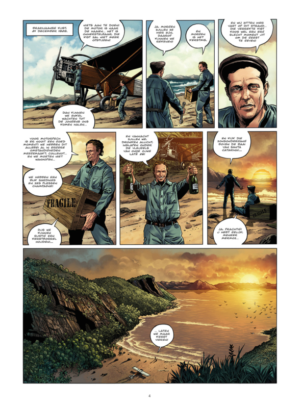Op de avond voor kerstmis zit Mermoz met zijn vliegtuig vast op een godvergeten Braziliaans strand. Samen met zijn trouwe mecanicien Collenot maakt hij een kist champagne soldaat, die hij vervoerde in het vrachtruim. Met een flink stuk in de kraag begint hij zijn hele leven te vertellen, om voor eens en voorgoed feiten en fictie van elkaar te scheiden. Van zijn kindertijd, op de vlucht voor de oorlog, zijn soldatentijd bij de luchtmacht, tot zijn heldendaden als postvlieger, met avonturen van de Noord-Afrikaanse woestijn tot het Andesgebergte. Een verhaal dat ons de echte Mermoz leert kennen!