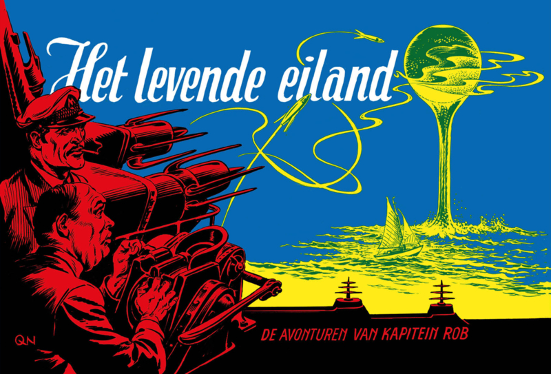 Pieter Kuhn laat in Het levende eiland zien bijzonder fantasierijk te zijn, want in dit verhaal laat hij een eiland plotseling uit het water stijgen. Vervolgens vliegt het eiland met steeds toenemende snelheid de lucht in om op 50.000 kilometer afstand van de aarde als een tweede satelliet van onze planeet te blijven zweven. Het blijkt een uitvinding te zijn van Professor Prudon, maar uiteraard niet zonder gevaar. Rob verruilt zijn schip ‘Vrijheid II’ voor een ruimtechip en vliegt in opdracht van Prudon letterlijk naar de maan, die tot ieders verbazing hol blijkt te zijn.