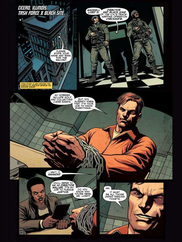 The members of the Justice League are Earth’s most powerful and famous superheroes... but they aren’t the only team in town. The Suicide Squad strikes from the shadows and does the jobs too dirty for superheroes to handle. Under the iron fist of Director Amanda Waller, these monsters and maniacs have operated in total secrecy...until now. Batman is on their trail and the Squad’s existence isn’t something he or the Justice League can tolerate. It must be shut down. But while the heroes and antiheroes are distracted fighting each other, twisted mastermind Maxwell Lord assembles a nightmarish army of DC’s deadliest villains to take out both teams!
