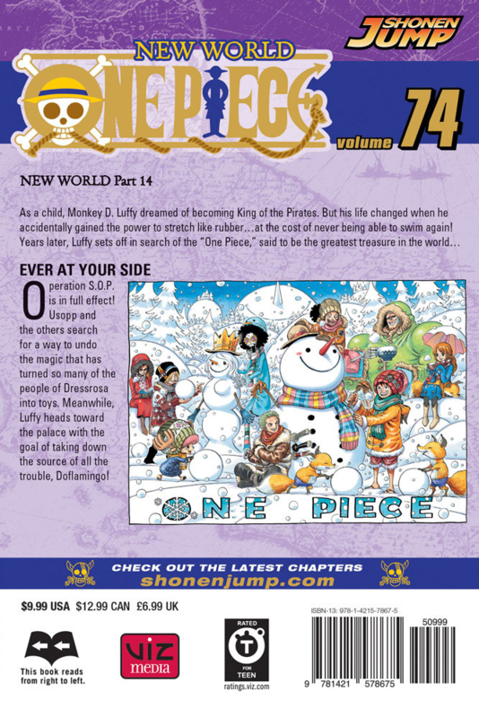 Operation S.O.P. is in full effect! Usopp and the others search for a way to undo the magic that has turned so many of the people of Dressrosa into toys. Meanwhile, Luffy heads toward the palace with the goal of taking down the source of all the trouble, Doflamingo!