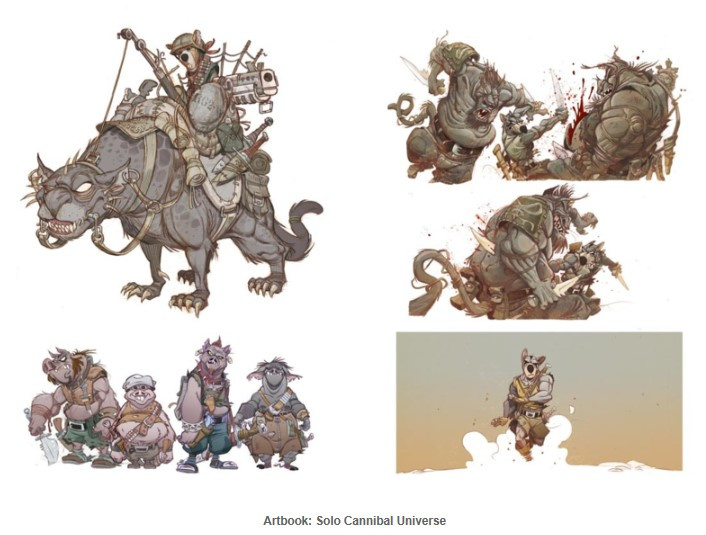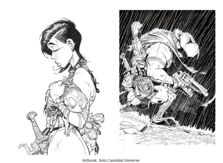 Sinds Oscar Martin begon met het schrijven aan het gewelddadige, maar poëtische karakter van SOLO in 1997, zijn er in ons taalgebied 5 strips van Solo, 3 boeken vol korte verhalen in SOLO KRONIEKEN en een spin-of in de vorm van de poes 'SOLO FORTUNA' verschenen. . Inmiddels is SOLO vertaald in 9 talen en zijn er talloze covers, illustraties, schetsen en ex-librissen verschenen. Werkelijk alles is hier samengebracht in de vorm van deze catalogus van de merkwaardige wezens die de 'Cannibal Universe' bevolken.