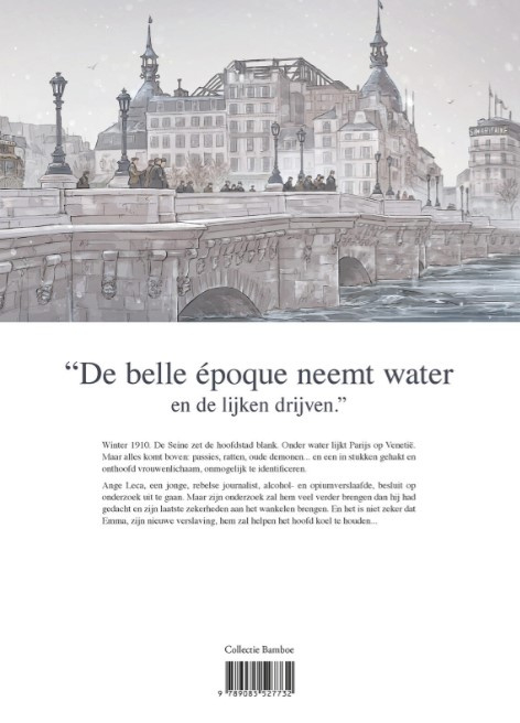 "Winter 1910. De Seine zet de hoofdstad blank. Onder water lijkt Parijs op Venetië. Maar alles komt boven: passies, ratten, oude demonen... en een in stukken gehakt en onthoofd vrouwenlichaam, onmogelijk te identificeren. Ange Leca, een jonge, rebelse journalist, alcohol- en opiumverslaafde, besluit op onderzoek uit te gaan. Maar zijn onderzoek zal hem veel verder brengen dan hij had gedacht en zijn laatste zekerheden aan het wankelen brengen. En het is niet zeker dat Emma, zijn nieuwe verslaving, hem zal helpen het hoofd koel te houden..."