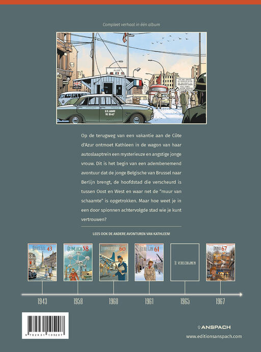 Dit is het vijfde album met de Brusselse Kathleen Van Overstraeten door Baudouin Deville en Patrick Weber na de eerder gesmaakte albums Brussel 43, Glimlach 58, Leopoldstad 60 en Inno 67. In elk compleet verhaal is een stukje Belgische geschiedenis verweefd met een avontuur van de ondernemende Kathleen. Deze keer wordt de actie verlegd naar West- en Oost-Berlijn voor een onvervalst spionageverhaal te midden de Koude Oorlog, met Stasi-agenten die op de loer liggen. Achterin zit naar goede gewoonte weer een dossier om het geschetste tijdvak te ondersteunen met historische info, anekdotes en Belgische achtergrond.