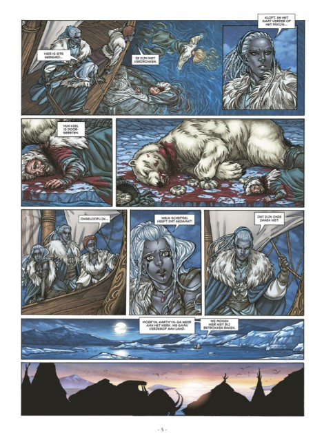 Gaw’yn is op zoek naar de saffieren dagge waarmee hij zich hoopt te verlossen van zijn duistere zijde. In het gezelschap van twee jonge, zwarte elfen speurt hij op de ijsvlaktes in het hoge noorden naar de mythische stad Skögsta. Maar in de buurt van een vreemd, seizoensgebonden kamp, kruist hij het pad van een oeroud roofdier, dat een geheim over de diepste aard van de elfen in zich meedraagt…