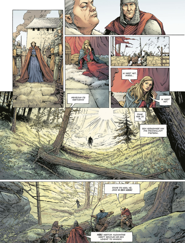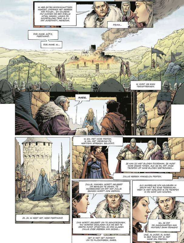 Tristan von Halsburg zit in het hoge noorden, waar hij met de rechtmatige troonsopvolger, Abel Plovpenning, de troon van Denemarken probeert te veroveren. Maar ook Margrete Plovpenning aast op die troon, en op Tristans hart. In Halsburg staat Diederik de Ontaarde voor de poorten van het kasteel van Humbeline. De hertogin wankelt, weifelt, is ze wel sterk genoeg om het hertogdom te redden? In In vrouwenhanden staan de vrouwen centraal, zowel in Denemarken als in Halsburg houden zij de touwtjes strak in handen.