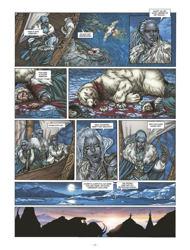 Gaw’yn is op zoek naar de saffieren dagge waarmee hij zich hoopt te verlossen van zijn duistere zijde. In het gezelschap van twee jonge, zwarte elfen speurt hij op de ijsvlaktes in het hoge noorden naar de mythische stad Skögsta. Maar in de buurt van een vreemd, seizoensgebonden kamp, kruist hij het pad van een oeroud roofdier, dat een geheim over de diepste aard van de elfen in zich meedraagt…