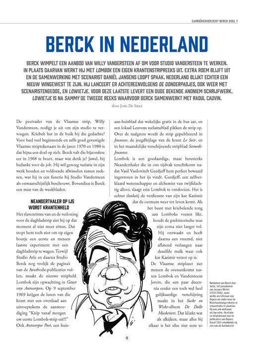 Het achtergronddossier biedt een rijk geïllustreerd overzicht van Bercks andere reeksen Lombok, De Donderpadjes en Lowietje. In het hoofdstuk over Raoul Cauvin komt met Cédric een van zijn grootste successen aan bod.