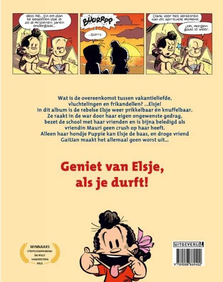 Wat is de overeenkomst tussen vakantieliefde, vluchtelingen en frikandellen?... Elsje! In dit album is de rebelse Elsje weer prikkelbaar én knuffelbaar. Ze raakt in de war door haar eigen ongewenste gedrag, bezet de school met haar vrienden en is bijna beledigd als vriendin Mauri geen crush op haar heeft. Alleen haar hondje Puppie kan Elsje de baas, en droge vriend GaitJan maakt het allemaal geen worst uit...