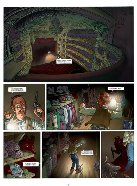 Opera Garnier vormt een veilige haven voor diva’s met oversized ego’s en hun steenrijke opdrachtgevers. Maar terwijl op de scène de hartstocht wordt verzinnebeeld, dient het doksaal als schouwtoneel voor de duistere praktijken van een obscuur crimineel die zich daar schuilhoudt. Wie verbergt zich achter het masker van Mephistopheles? Is het de kostuumontwerper? De directeur? Of die fantasierijke journalist Gaston Leroux, een individu dat Flora en Hugo iets te vaak tegen het lijf lopen tijdens hun onderzoek? Al hun pogingen om de demon te elimineren, draaien op niets uit. Op wie kunnen ze rekenen om hen te helpen? Het spook van Flora’s pas overleden moeder, of de avant-garde (en licht onstabiele)